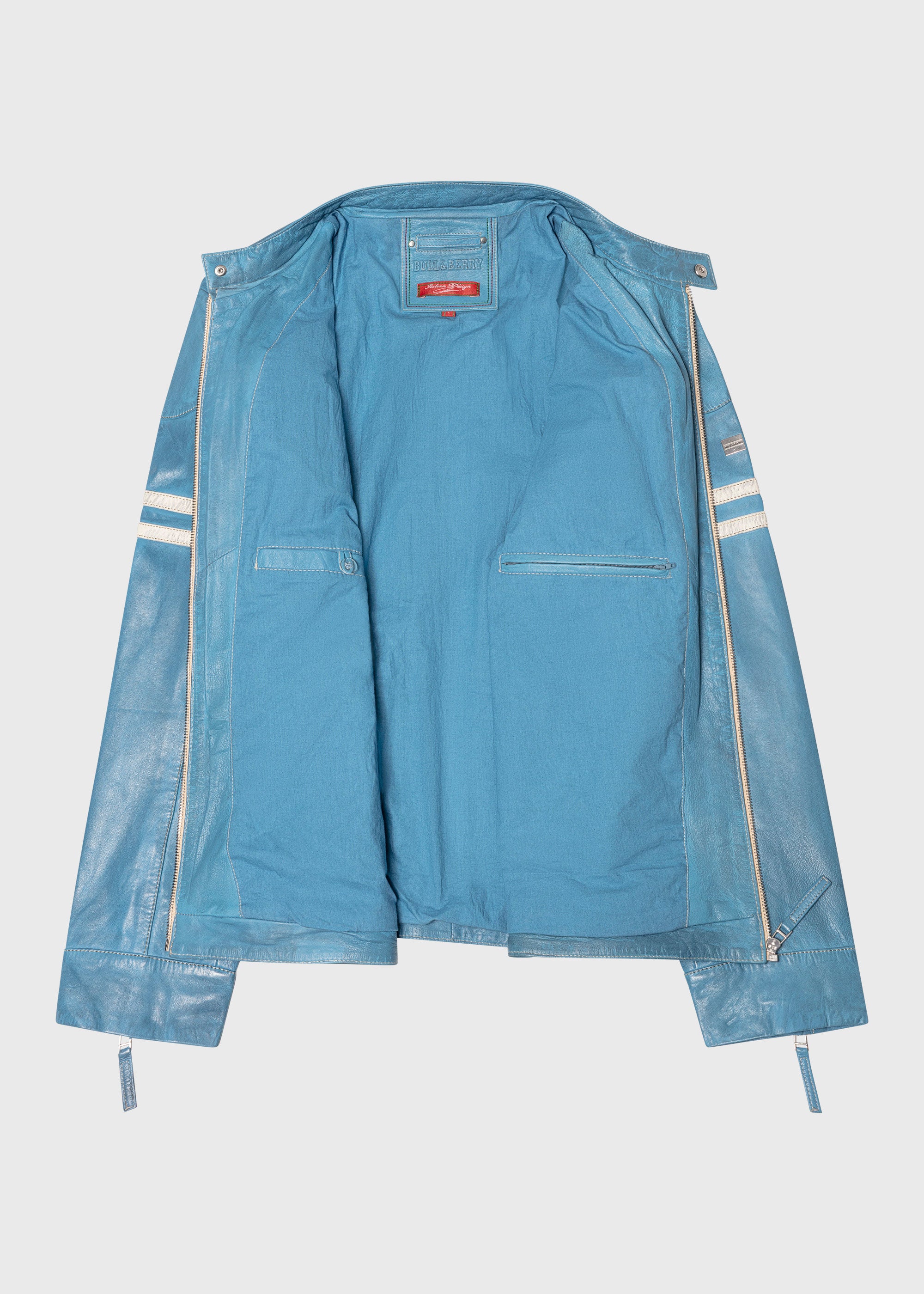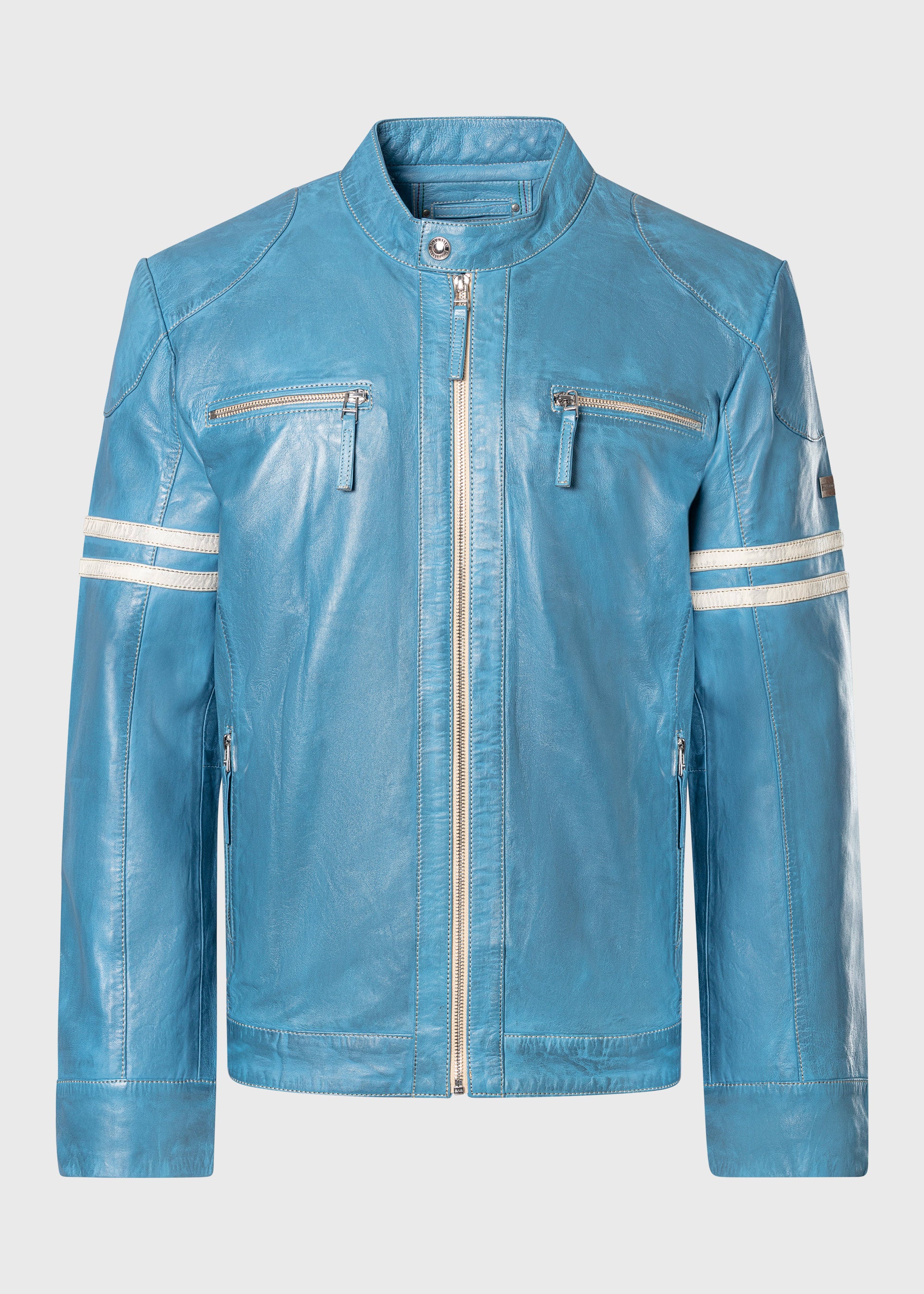 - Klassischer Biker-Stehkragen mit Druckknopf.