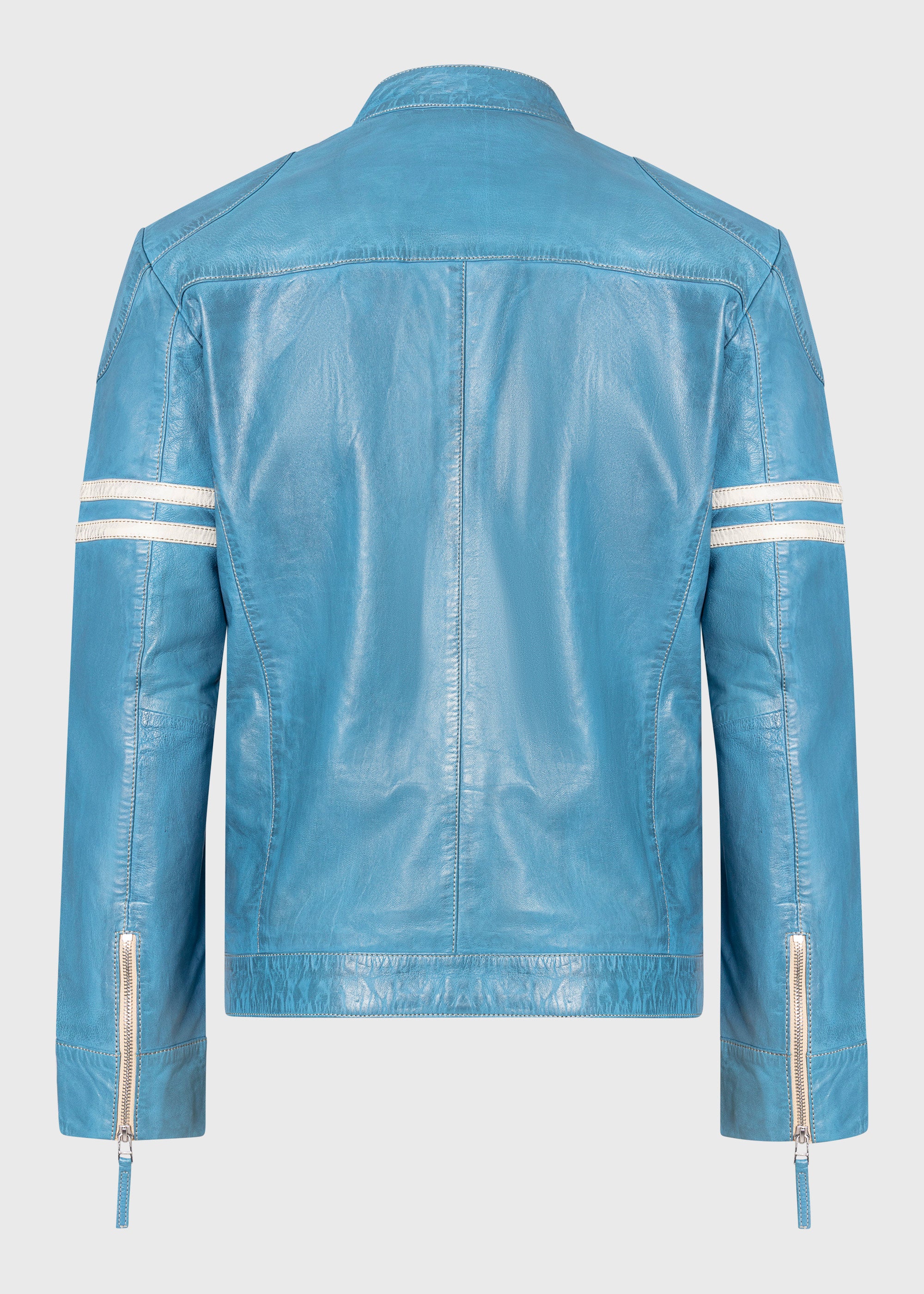 - Beige Verziernähte (Racer-Streifen) aus Leder an den Oberarmen.