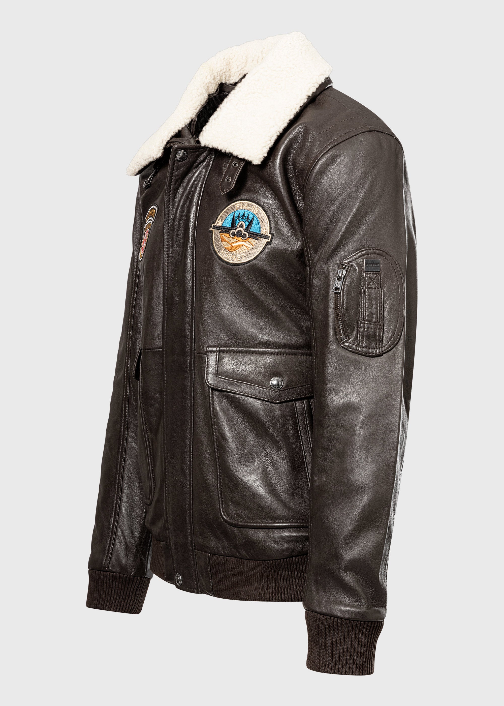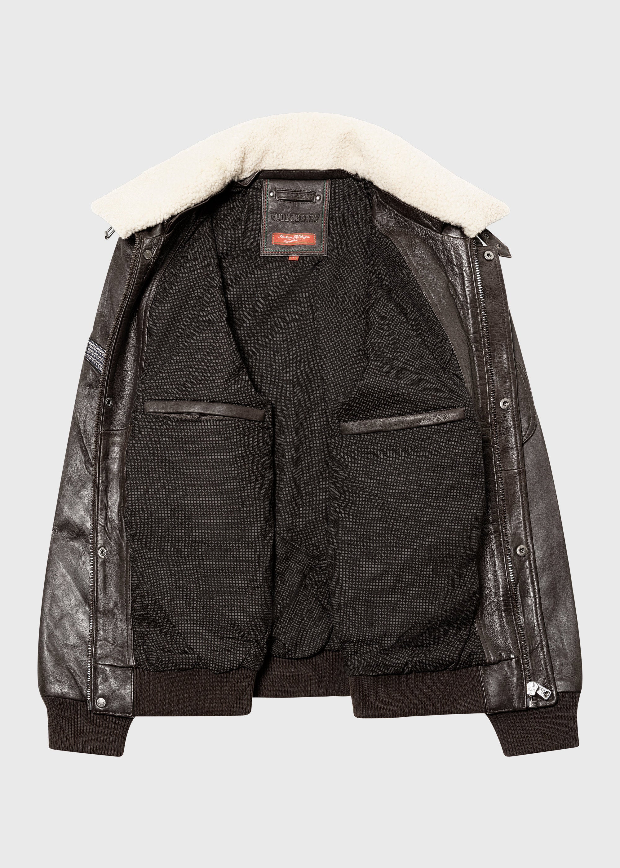 - Stilvoller Hemdkragen mit abnehmbarem, glatten Naturpelzkragen.