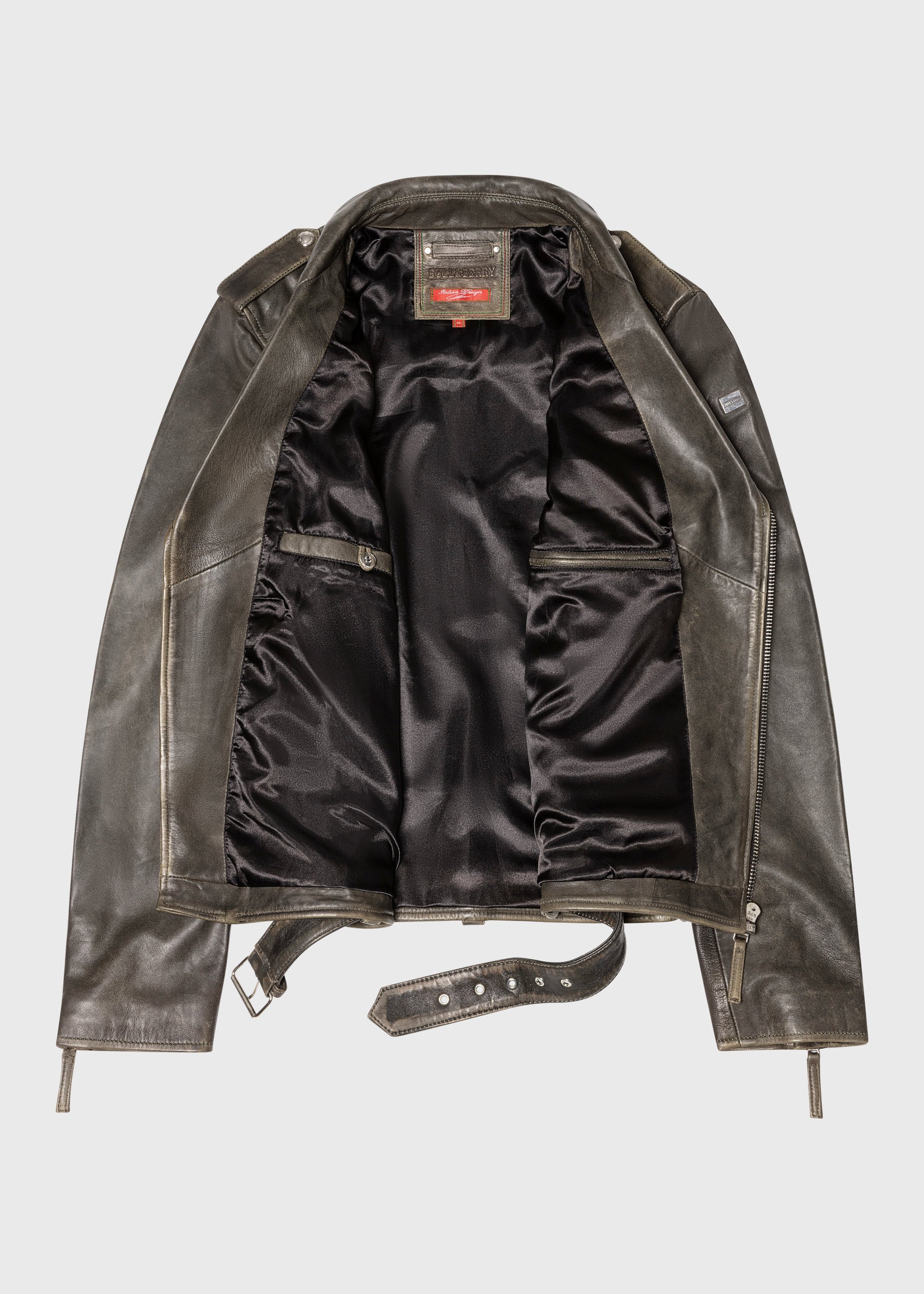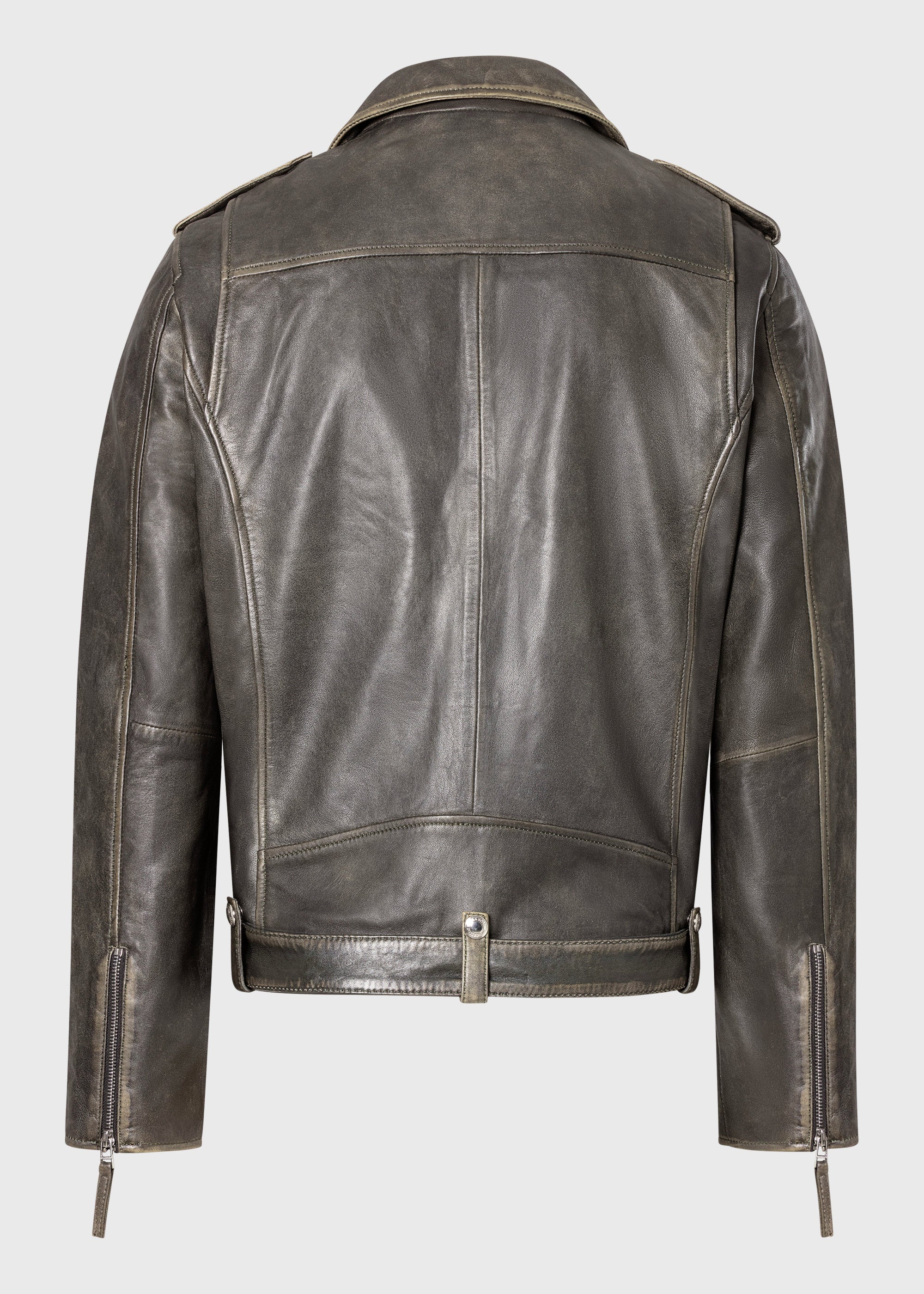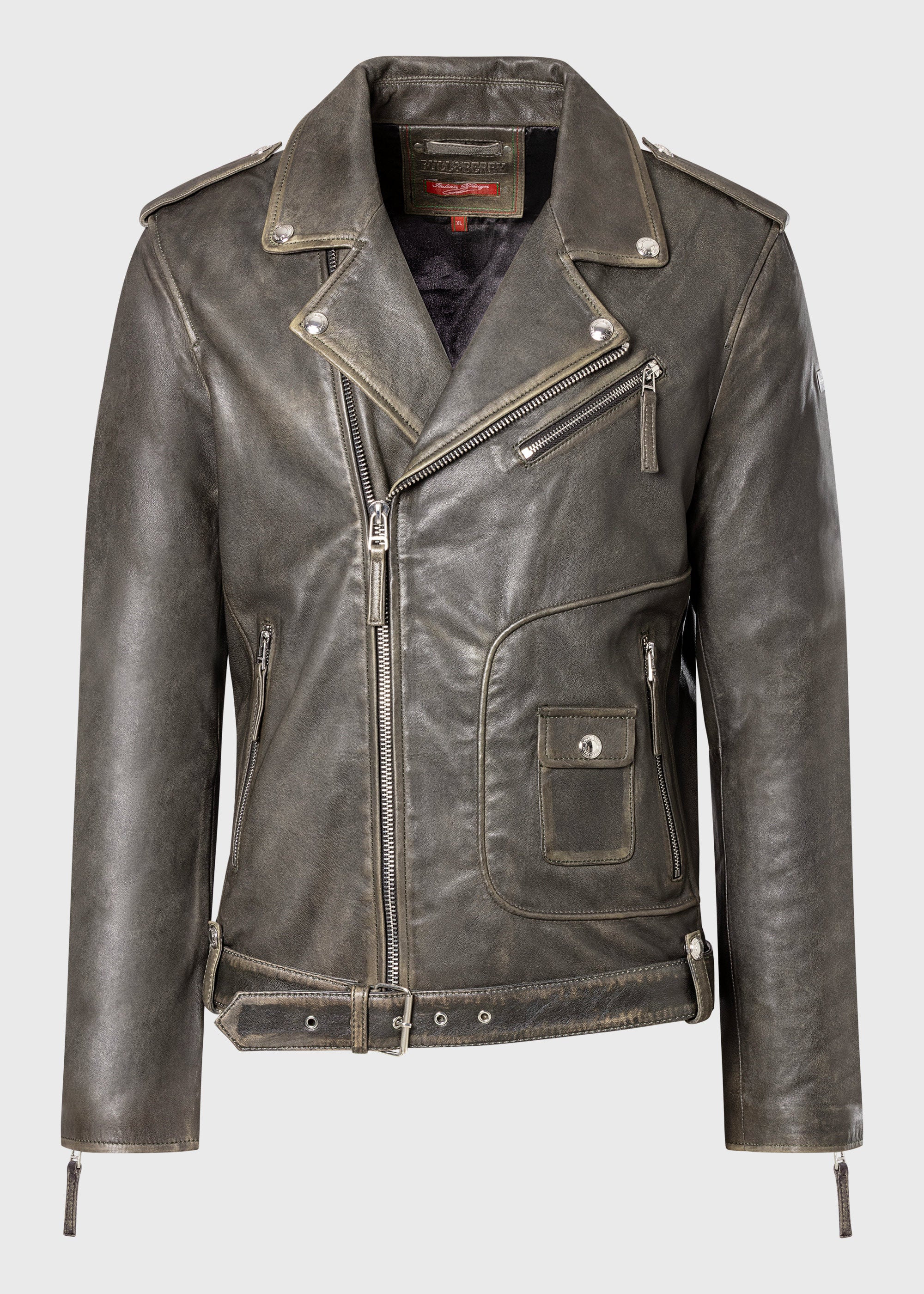 Bikerjacke aus hochwertigem Lammnappa Leder im angesagtem modernen Look, Armabschluss mit Zipper und die schmale Passform sind die weiteren Verarbeitungsdetails. Die Eingrifftaschen bietet die Herren Lederjacke genügend Platz für Schlüssel Handy etc. Das Futter besteht aus 100% Polyester daher ist diese Leder Jacke sehr angenehm zu tragen. Das Armfutter besteht zu 100% aus Polyester.