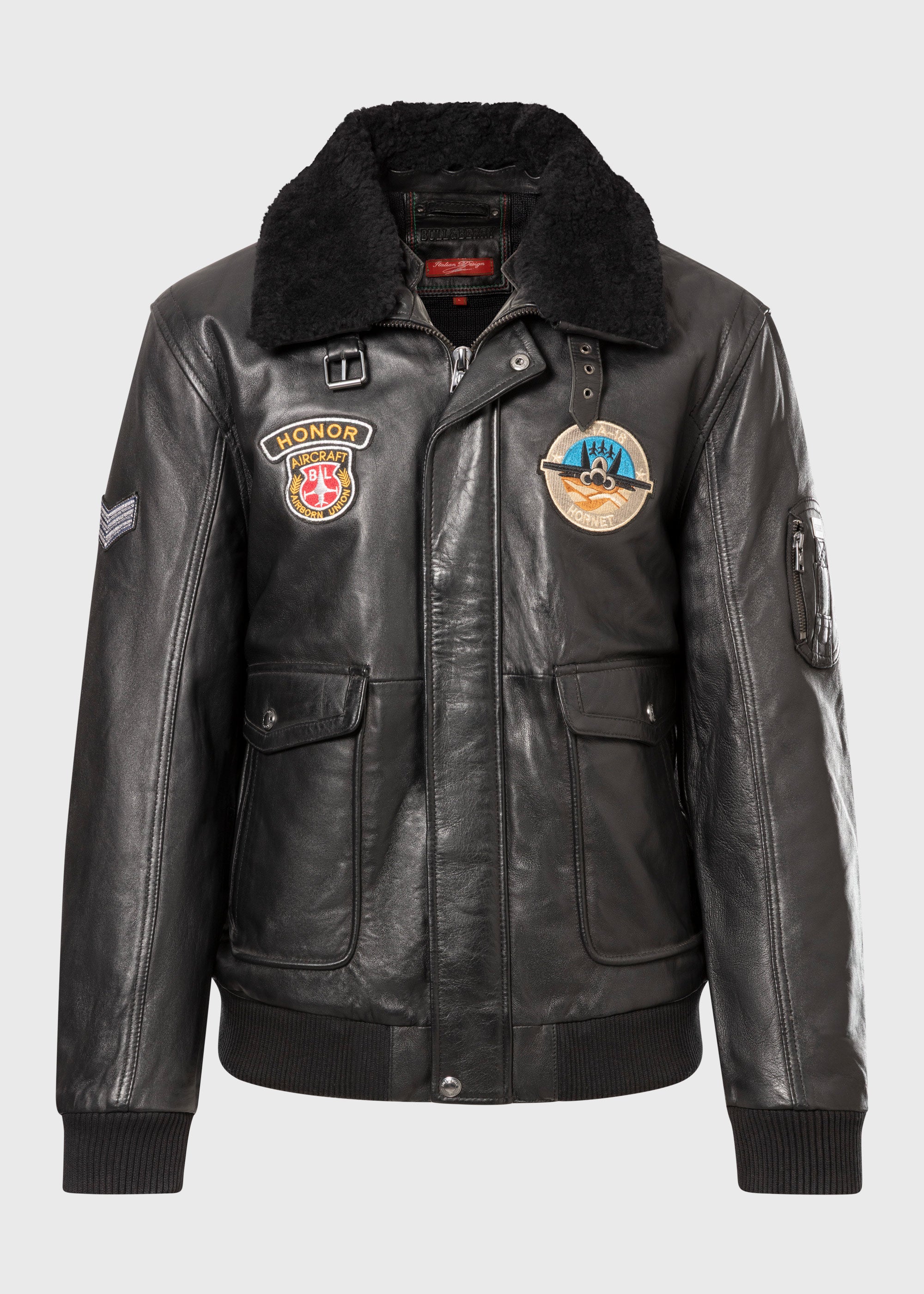 Pflanzlich gegerbtes Nappaleder vom Schaf. Robuster Reißverschluss mit zusätzlichem Sturmverschluss. Mehrere Taschen (innen und außen). Stilvoller Hemdkragen mit abnehmbarem, glatten Naturpelzkragen. Drei - vom Militär inspirierte - Aufnäher. Gerippte elastische Manschetten und Bund aus 100% Baumwolle. Innenfutter besteht aus 100% Baumwolle. Reguläre Passform.